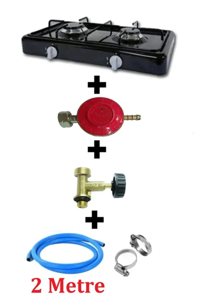 sobapark 2 Gözlü Tüplü Ocak Emaye Set Üstü Ocak İkili Ocak Karavan Kamp Ocağı Küçük Tüplü Ocak Çakmaksız