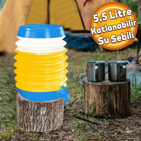Akordiyonlu Su Sebili Meşrubat İçecek Kabı Bidonu Damacana Katlanabilir Musluklu Körüklü 5.5 Litre Termos Piknik Kamp Mangal