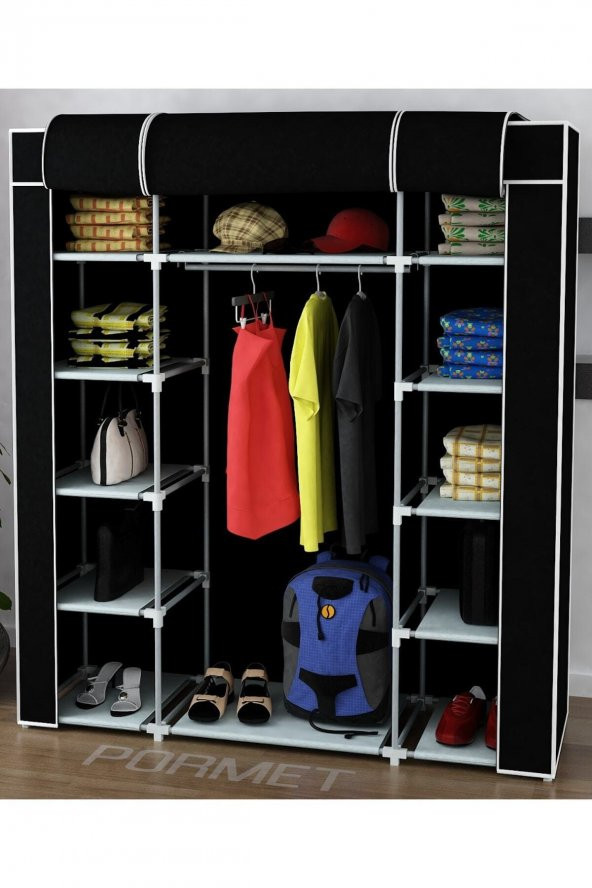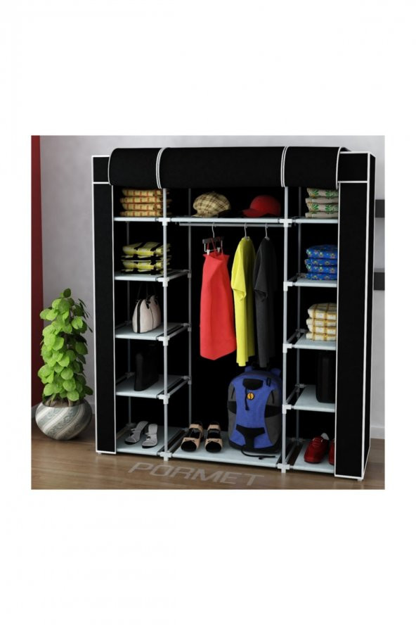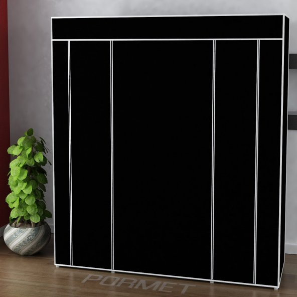 PORMET Çelik Profilli Siyah Renk Bez Dolap, Kumaş Gardırop