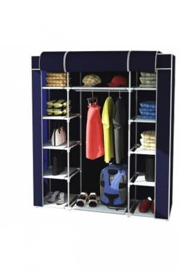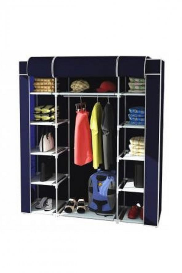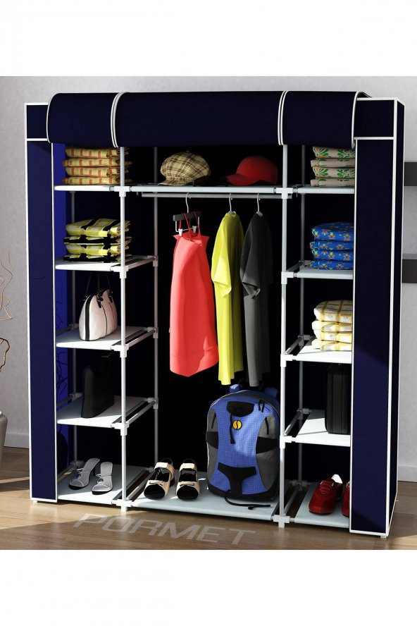 PORMET Çelik Profilli Lacivert Renk Bez Dolap, Kumaş Gardırop