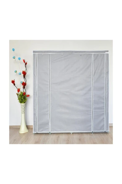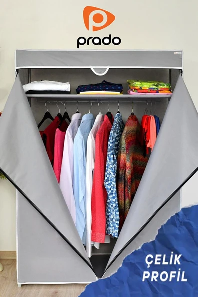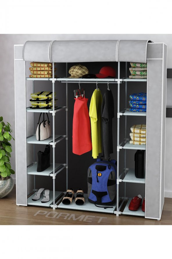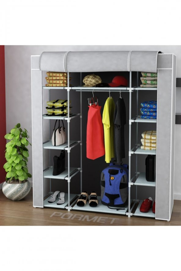 PORMET Çelik Profilli Gri Renk Bez Dolap, Kumaş Gardırop