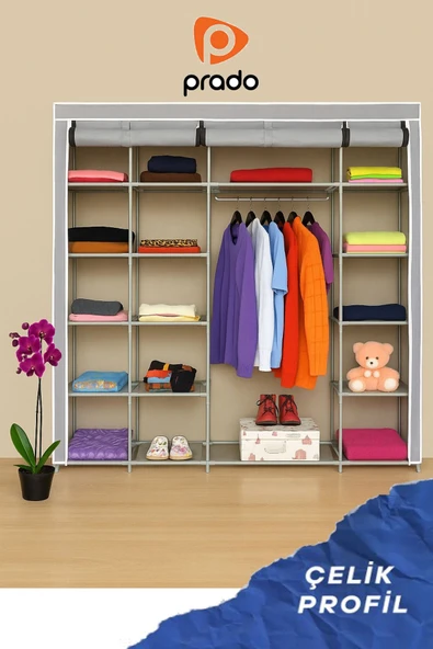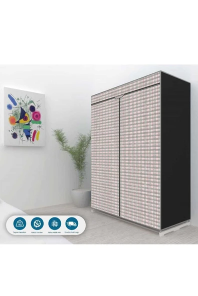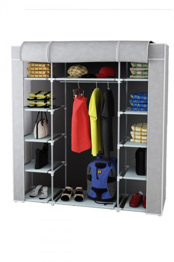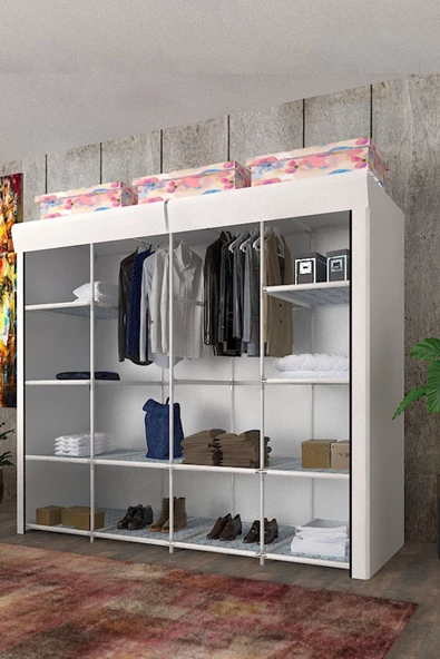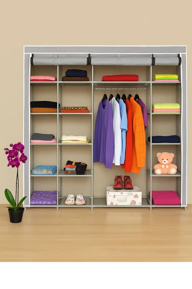 KalyonHome Çift Yandan Çok Raflı Çelik Profilli Bez Dolap Kumaş Gardırop