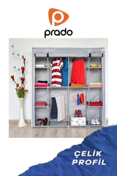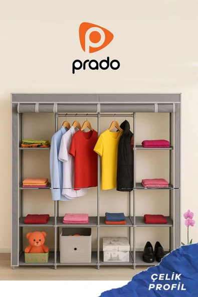 Prado Basic Çelik Profilli Portatif Bez Dolap GRİ