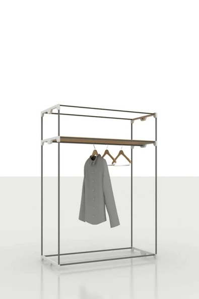 TEKNOR Metal Profil Çift Raf Çift Askılık Lüks Bez Dolap - 4 RENK