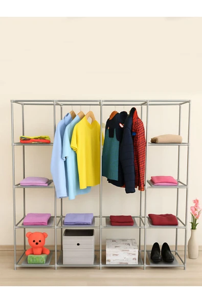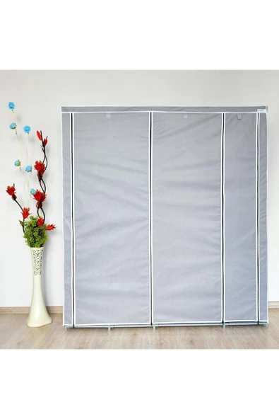 beyazpazar Metal Profilli Bez Dolap Süper Ürün Gardırop Elbise Dolabı Gri Portatif Bez Dolap Gardırop Gri