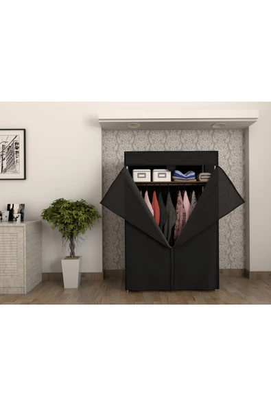 CimriKese Geniş Hacimli Çift Askılı Cimrikese Bez Dolap Siyah