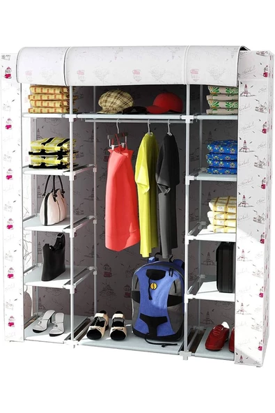 PORMET Çelik Profilli İstanbul Temalı Bez Dolap, Kumaş Gardırop