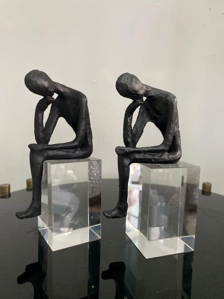 Kitap Tutucu 2 li Kristal Kaideli Düşünen İnsan Biblo Kitap Tutucu