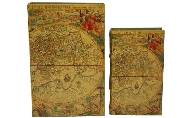 pilelistore Kutu Kitap Harita 2'li Set Dekoratif Hediyelik
