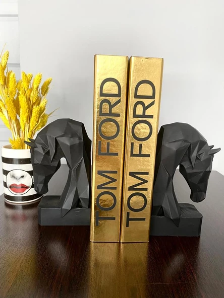 KİTAP TUTUCU KÜBİK AT FİGÜRLÜ 2 Lİ SİYAH GOLD RENKLİ ( POLYESTER)