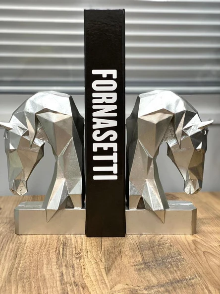 KİTAP TUTUCU KÜBİK AT FİGÜRLÜ 2 Lİ GÜMÜŞ ( POLYESTER)