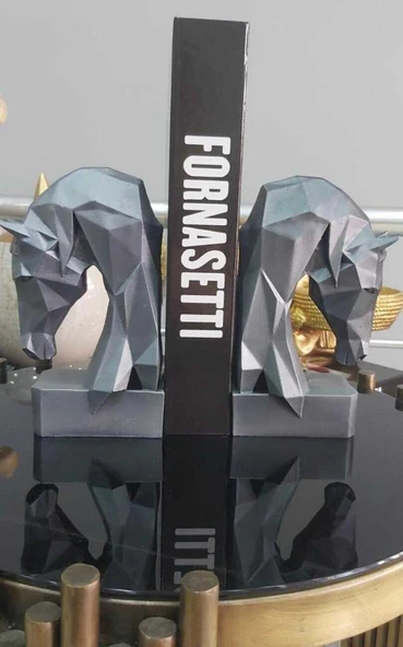 KİTAP TUTUCU KÜBİK AT FİGÜRLÜ 2 Lİ ANTRASİT ( POLYESTER)