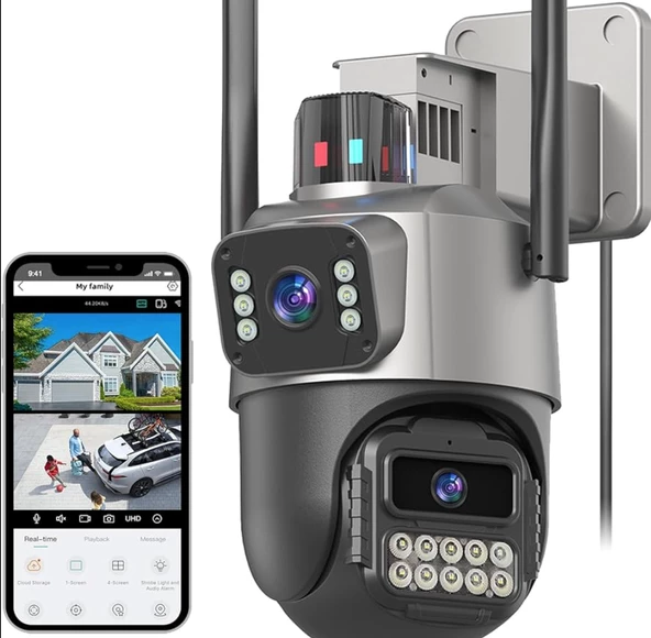 CMR 7 Çift Kameralı 1080P Görüntü Kalitesi Dış Mekan Uyumlu Su Geçirmez Sensörlü Güvenlik Kamerası