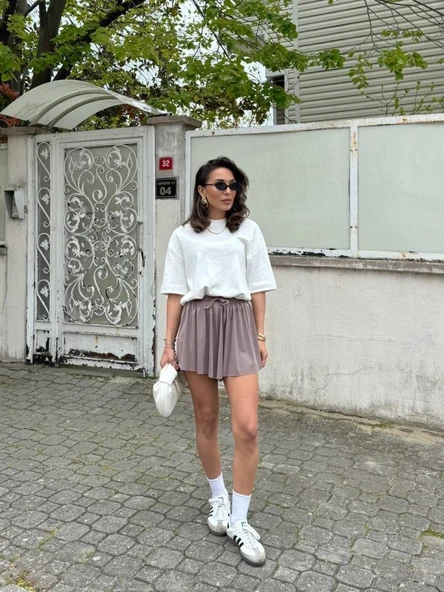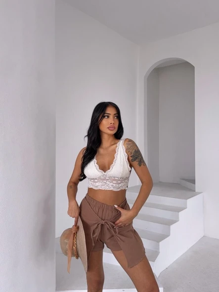 Kadın Sandys Kumaş Bağıcık Detaylı şort