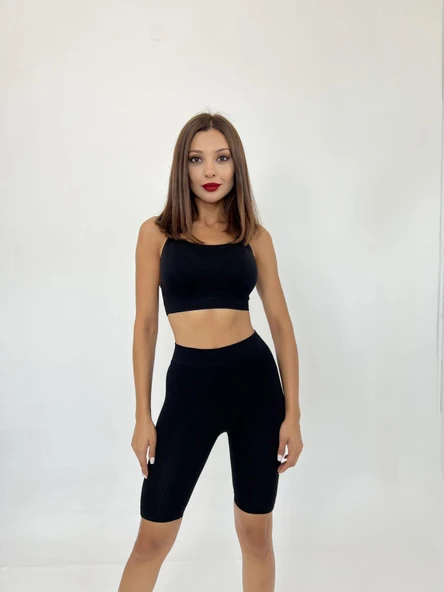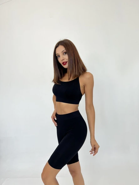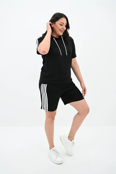 Kadın Çizgi Detaylı Büyük Beden Şortlu Takım 3768-23