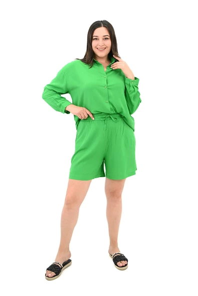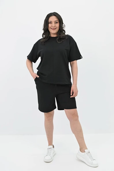 Kadın Büyük Beden Kol Detaylı Şortlu Takım 8101-24
