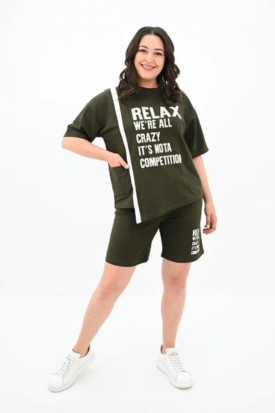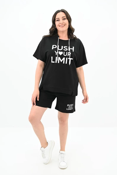 Kadın Yazı Baskılı Büyük Beden Şortlu Takım 3796-23