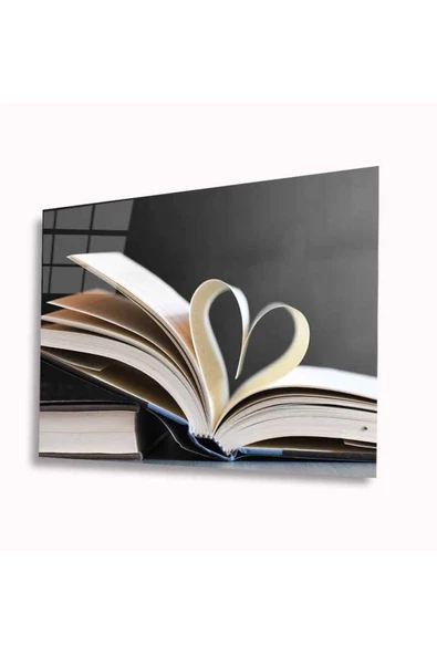 Kalp Kitap Dekoratif ve Modern Cam Tablo 4mm Dayanıklı Temperli Cam