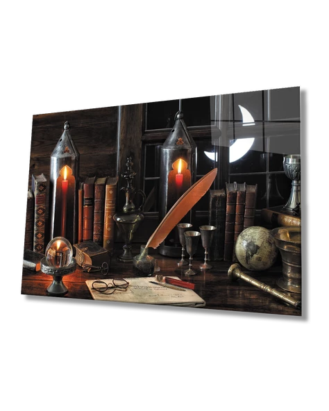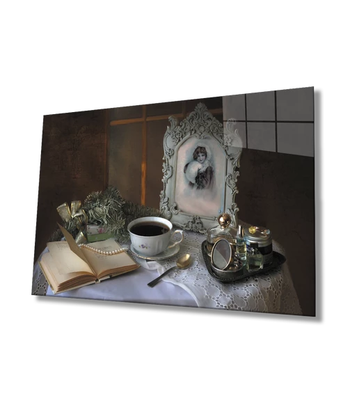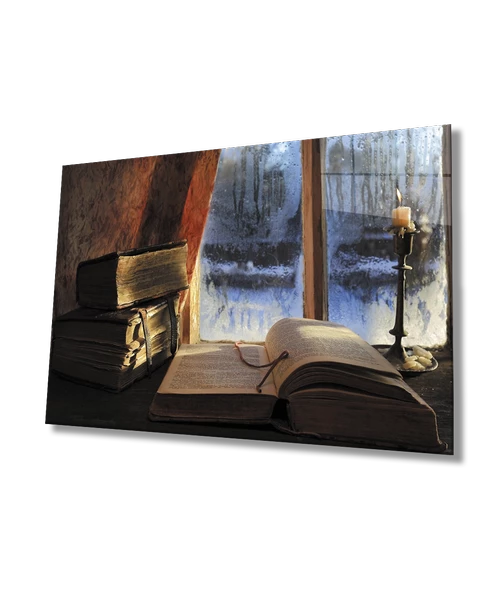 Kitap İnci Natürmort Dekoratif ve Modern Cam Tablo Book Pearl Still Life