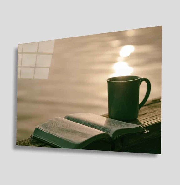 Güneş Deniz ve Kitap Dekoratif ve Modern Cam Tablo