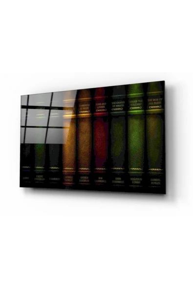 Siyah Neon Yeşil Kitap Dekoratif ve Modern Cam Tablo