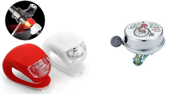 BİSİKLET ÇELİK ZİL YWS & SİLİKON IŞIK SETİ SET HALİNDE