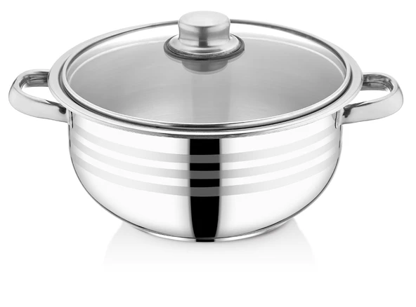 Bestinox 24x12 cm Boru Kulplu Cam Kapaklı Çelik Derin Tencere-4.75 Litre