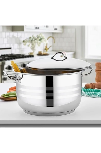 Bestinox 40x15 cm Flanşlı Kulp Çelik Kapaklı Çelik Kısa Tencere-18 Litre