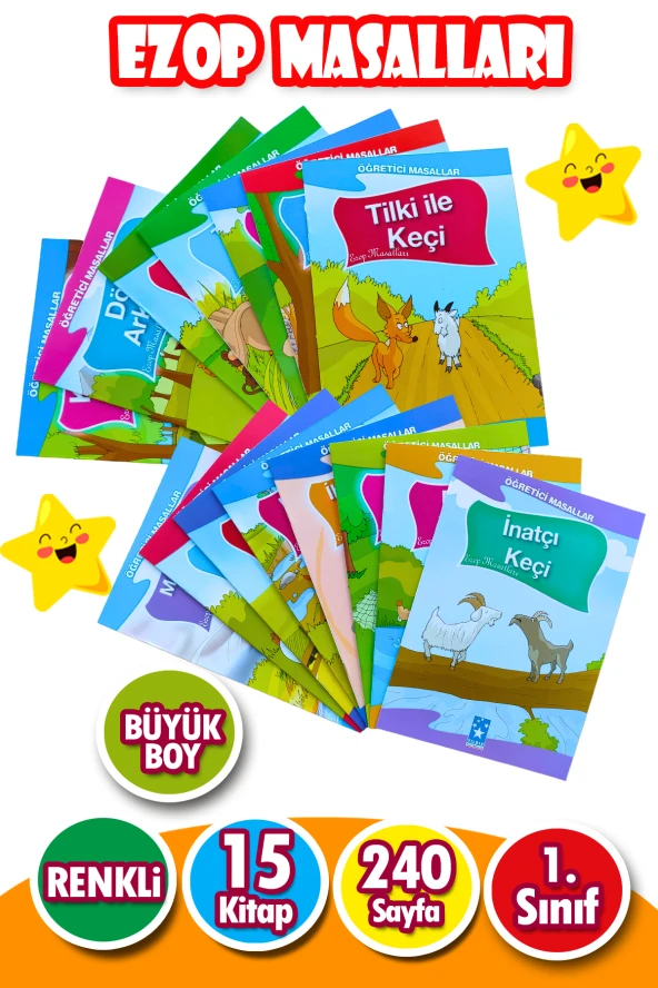 EZOP MASALLARI SETİ 1. SINIFLAR İÇİN BÜYÜK BOY RESİMLİ 15 KİTAP