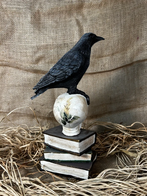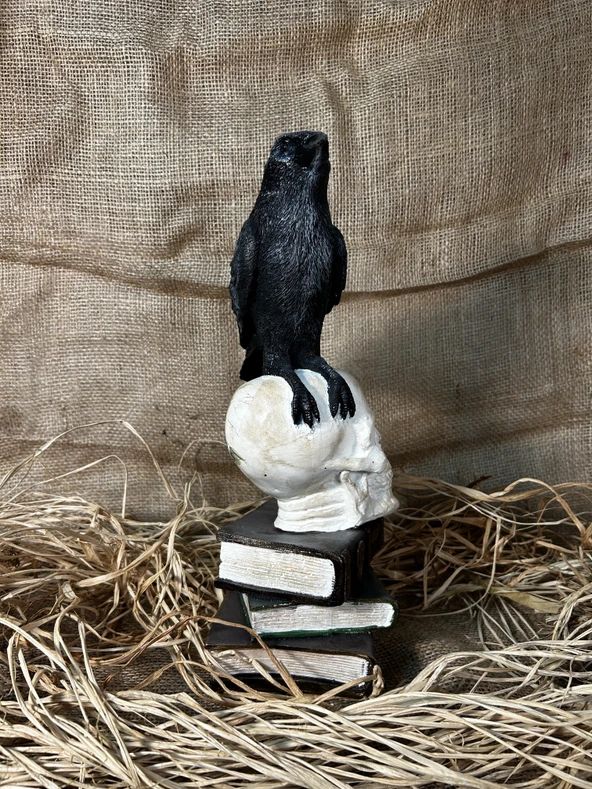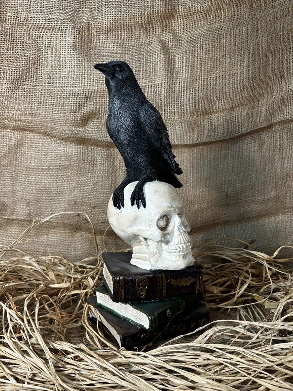 Kitap ve Kurukafa Üzerinde Karga Biblo Ev ve Ofis Dekorasyonu