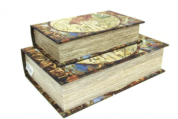 Kutu Kitap Harita 2'li Set Dekoratif Hediyelik
