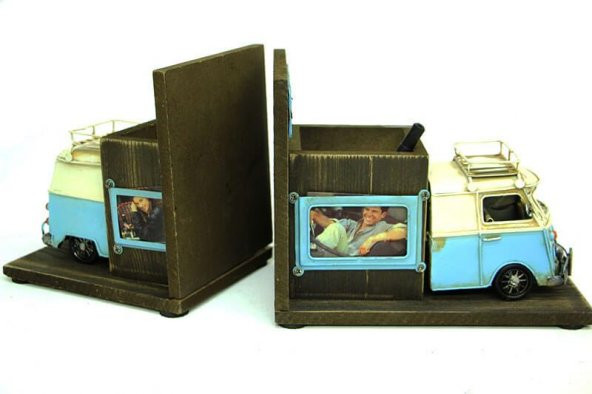 Dekoratif Metal Minibüs Kitap Tutucu Kalemlik Çerçeve Hediyelik