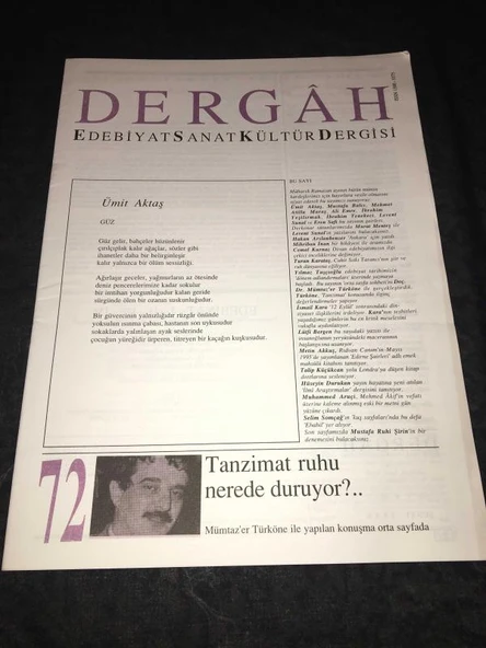 DERGAH Dergisi Şubat 1996 Sayı 72 YANARDAĞIN ÜSTÜNDEKİ ÜLKÜ TAMER,Levent Sunal (Sahafiye Kitap)