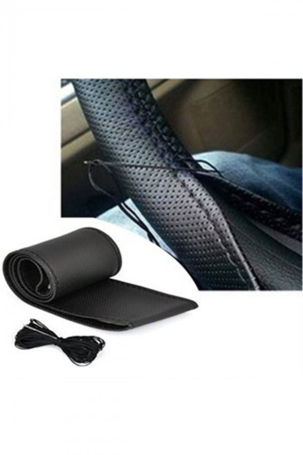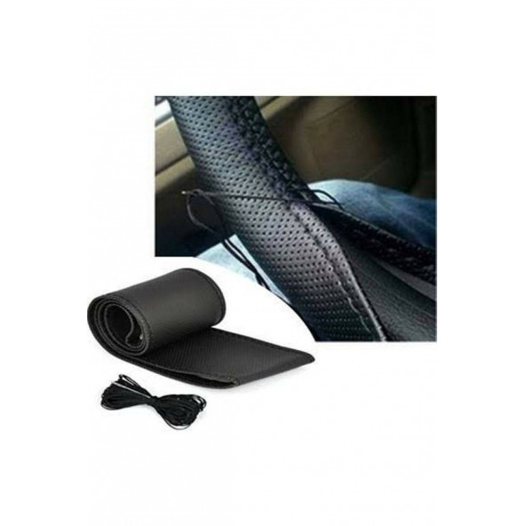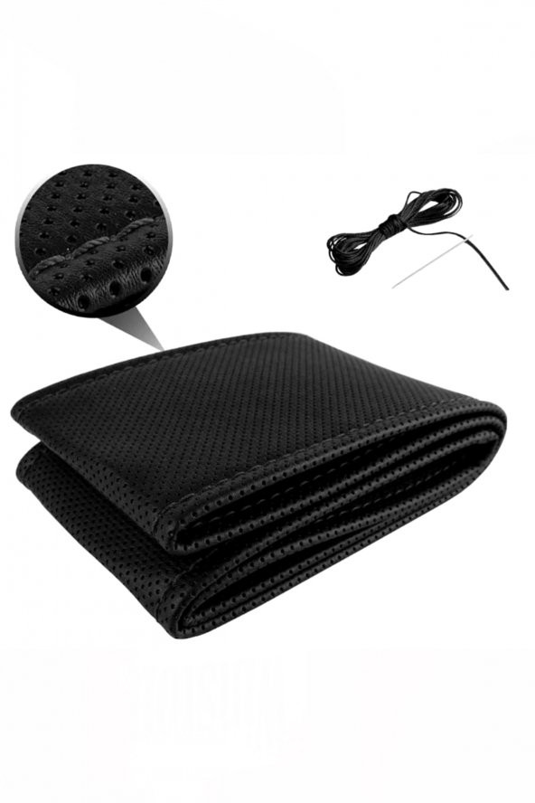 Universal Direksiyon Kılıfı Dikmeli Delikli Desen Siyah Ipli