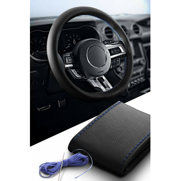 Direksiyon Kılıfı Deri Sarmal Dikmeli Direksiyon A+Kalite Noktalu Siyah Mavi Dikişli