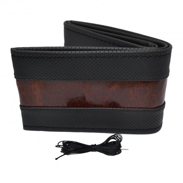 Otom Dikişli Direksiyon Kılıfı Çift Renk Deri Siyah - Kahve DK-304