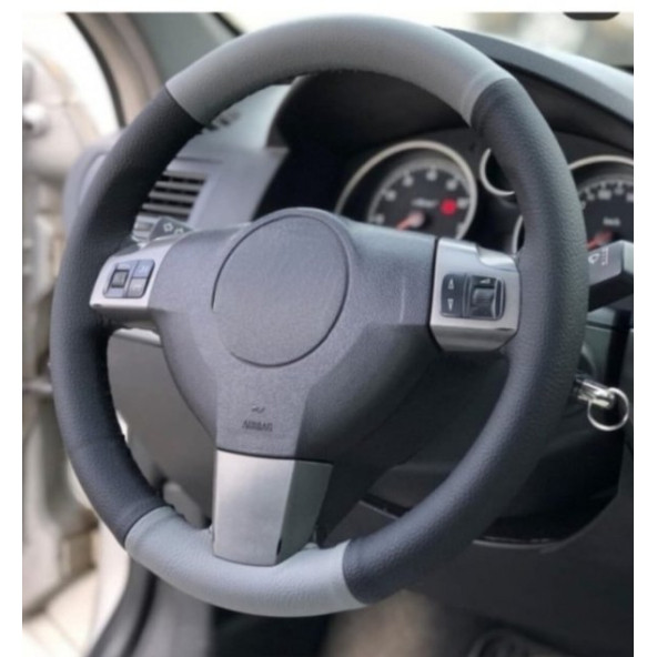 DİREKSİYON KILIFI GEÇMELİ DERİ (AÇIK GRİ-SİYAH) (AÇIKLAMAYI OKUYUN) TÜM ARAÇLARA UYUMLU
