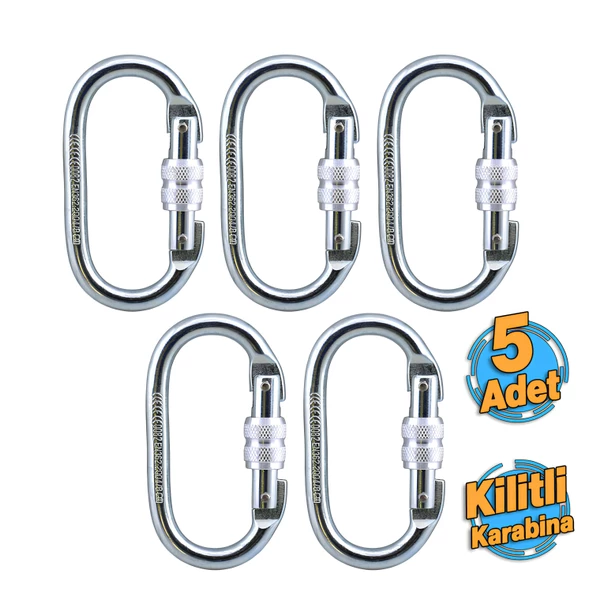 5 Adet Oval Karabina Kilitli 10 mm Kanca Paslanmaz Çelik Kilit Tırmanma Kamp Ekipman Tırmanış Askı