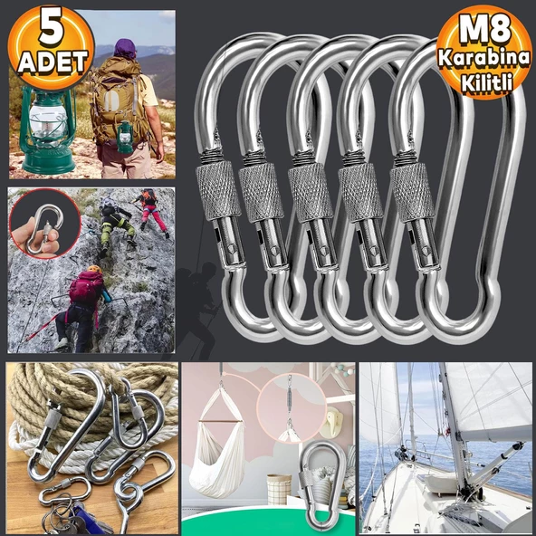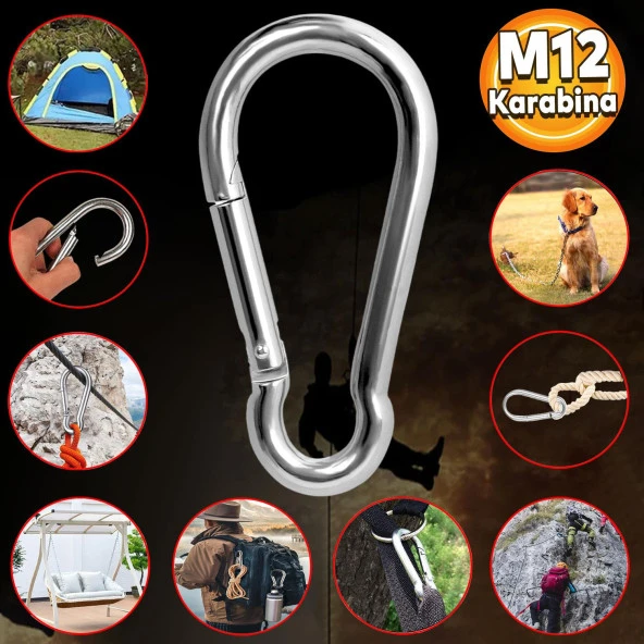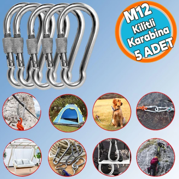 Karabina Yaylı Kanca Paslanmaz Çelik Kilit Olta Dağcılık Kamp Malzemeleri Salıncak (12 MM) 5 ADET
