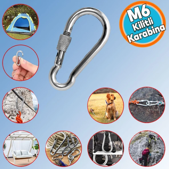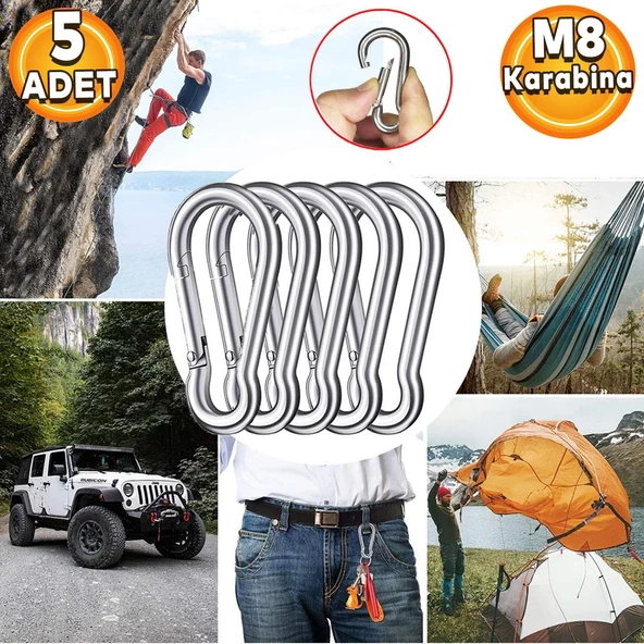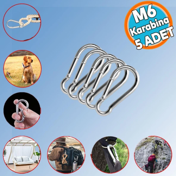 Karabina Yaylı Kanca Paslanmaz Çelik Kilit Olta Dağcılık Kamp Malzemeleri Salıncak (6 MM) 5 ADET