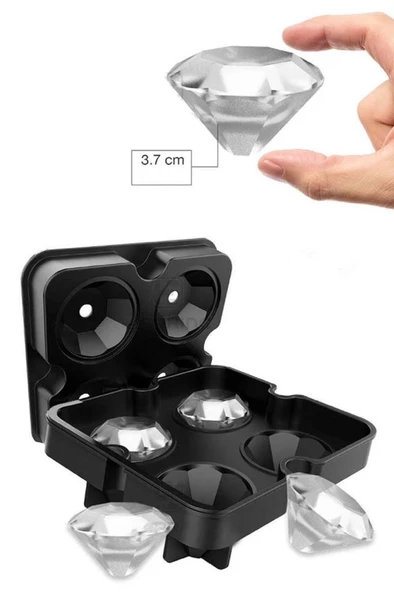 Silikon 4 Göz Buz Yapıcı Kalıbı Elmas Şeklinde Kalıp Kokteyl Viski Buz Küpü Top Yapma Tepsisi Buzluk
