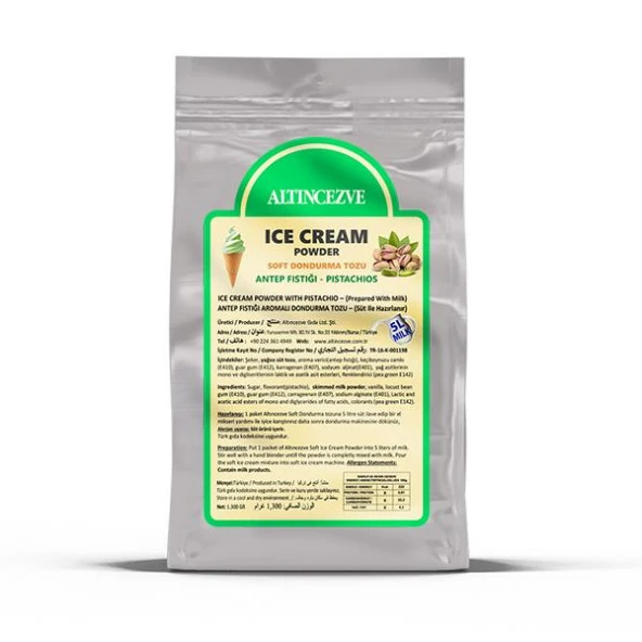 Altıncezve Dondurma Tozu Antep Fıstıklı 1.300 Gr - (5L Süt)
