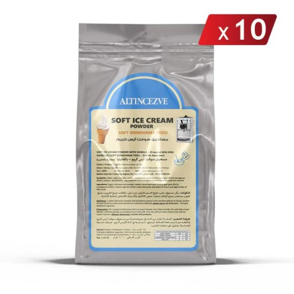Soft Dondurma Tozu Vanilyalı 1.300 Gr x 10 Adet - 5L (Süt)