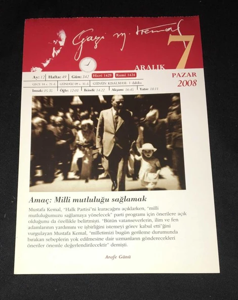 GAZİ MUSTAFA KEMAL Görselli 7 ARALIK 2008 PAZAR Takvim Yaprağı (Sahafiye Kitap)