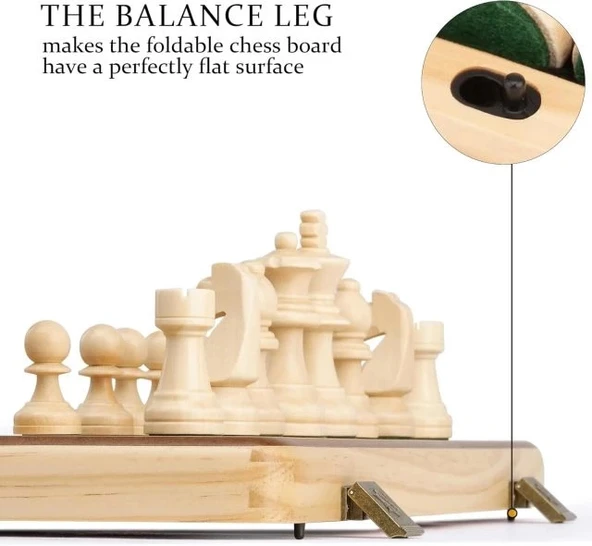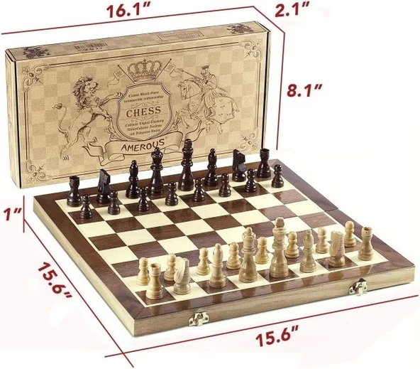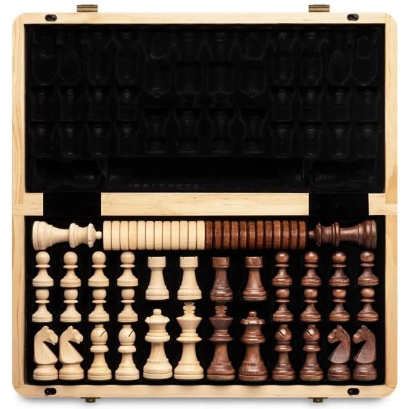 Periboia Mıknatıs Taşlı Ahşap Katlanabilir Kutulu Satranç Oyunu 30 Cm