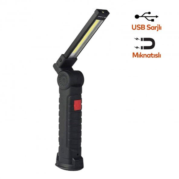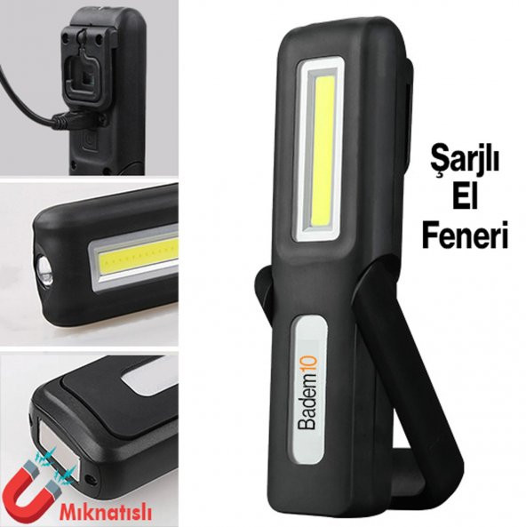 Markalonya Mıknatıslı İkaz Lambası Çalışma Oto Tamir Kamp Lambası Cob Led El Feneri Şarjlı
