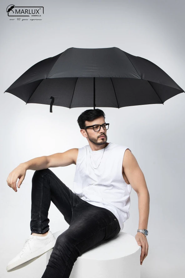 Marlux 8 Telli Büyük Boy Manuel Protokol Kamp ve Plaj Şemsiyesi Siyah Demir Ayaklı Askılı Taşıma Çantası M24MPR2007