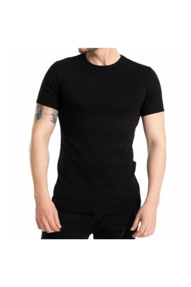 Siyah Basic Rahat İnce Petek Kumaş Spor Erkek Tshirt 22ETSHPORT