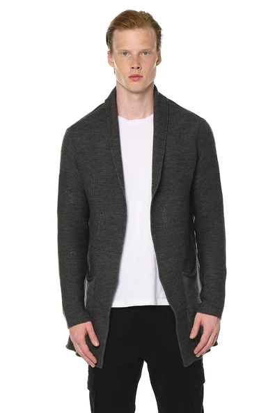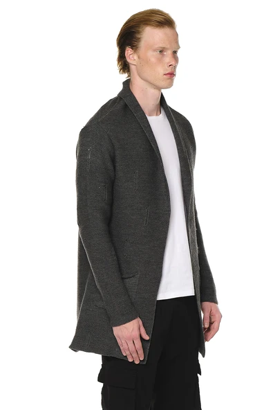 Erkek Yırtık Detaylı Cepli Triko Uzun Salaş Spor Hırka