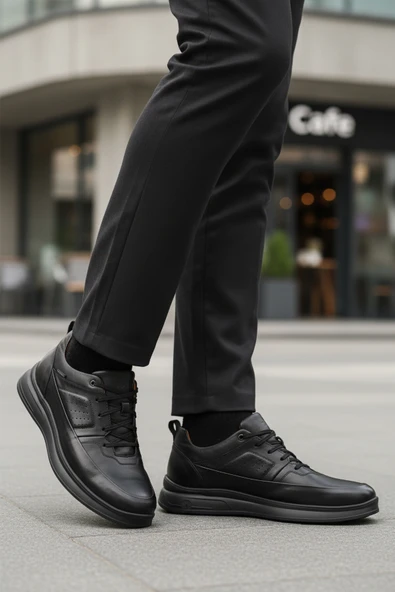 Marcomen Siyah Hakiki Deri Erkek Casual Ayakkabı